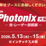 2026年4月15日 / 最終更新日時 : 2026年4月15日 Quantec_admin 展示会 【出展告知】第6回 Photonix(フォトニクス)大阪 -光・レーザー技術展- に出展いたします 2026年5月13日(水)から15日(金)の3日間、インテックス大阪にて開催される「第6回 Photonix(フォトニクス)大阪」に出展いたします。 弊社はレーザー加工の「プロセスインテグレーター」として、従来の工法では […]